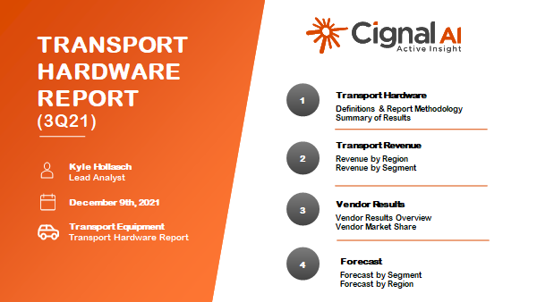 • North American optical revenue grew for the 4th consecutive quarter and registered its first quarter of YoY growth since COVID impacted 2Q20. Fujitsu and Cisco led in revenue growth.