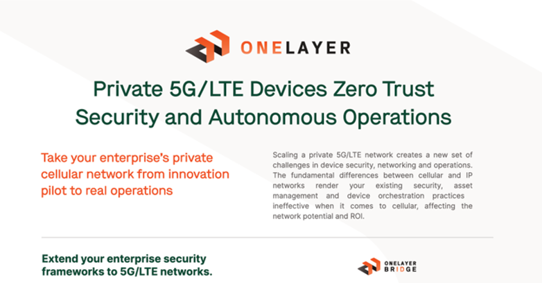 OneLayer’s mission is to secure and manage all private cellular network devices with enterprise-grade capabilities while eliminating the need for specialized cellular expertise. The company’s platform transforms private cellular environments from operational silos into integrated enterprise networks, providing complete device visibility, security, and control through familiar IT management tools.