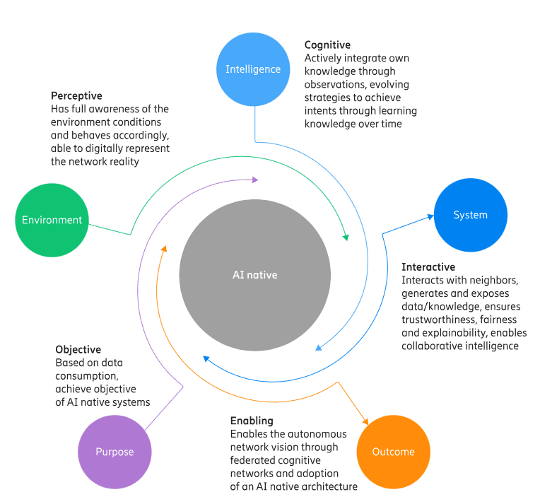 • Purpose: AI is integral to the entire network lifecycle, from initial design and deployment to autonomous operation and service creation.