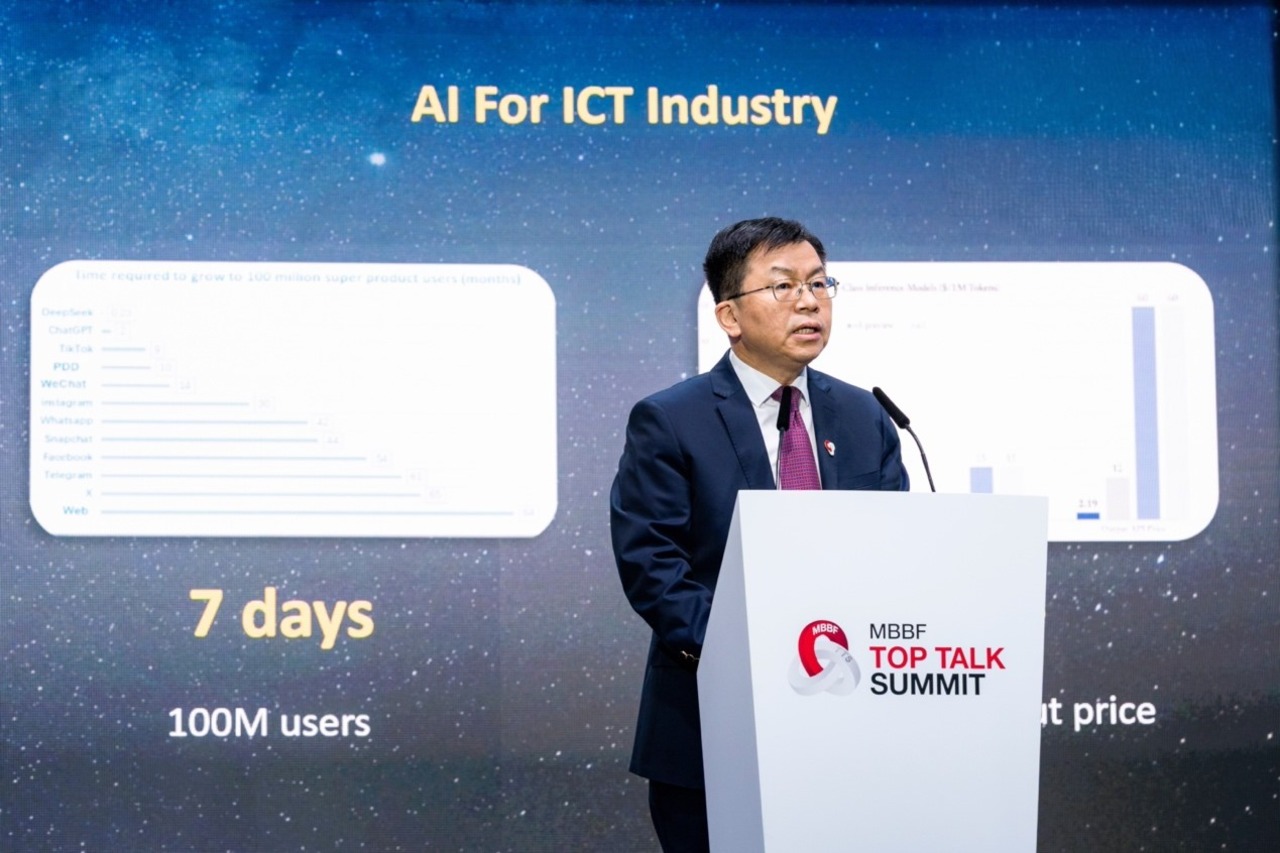 Li Huidi, executive vice president of China Mobile, speaks at the Global MBB Forum Top Talk Summit at Mobile World Congress in Barcelona, Spain, March 2, 2025. (Photo/China Mobile)